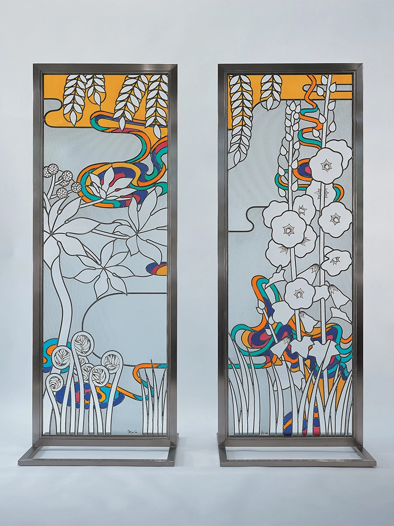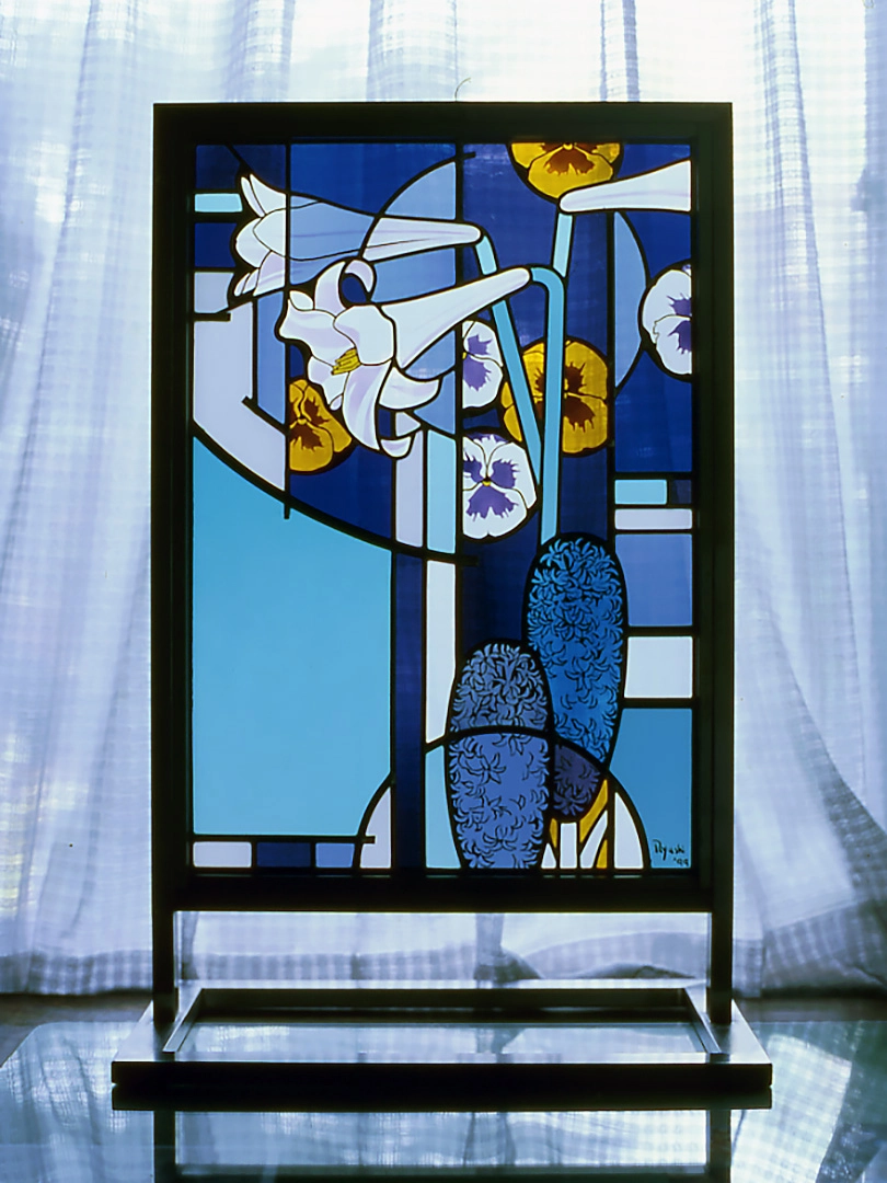東京藝術大学大学院で壁画を専攻し、1990年にステンドグラスと出会う。